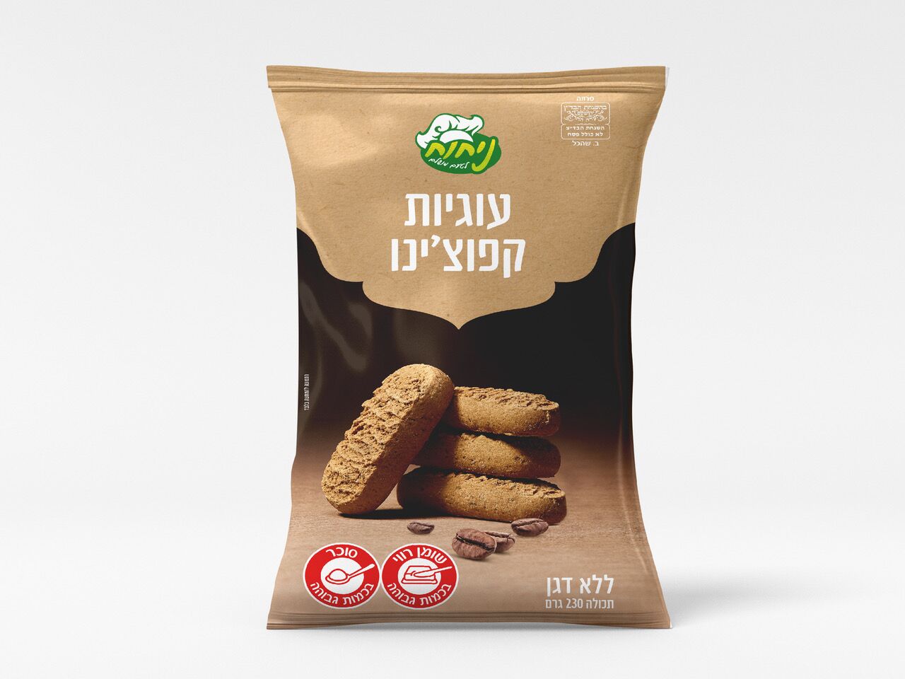 עוגיות קפוצ'ינו ללא דגן, ללא חומר משמר וללא צבעי מאכל.